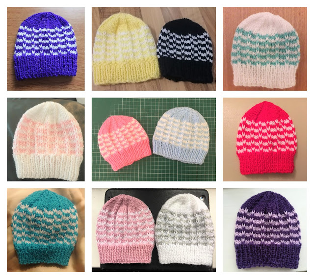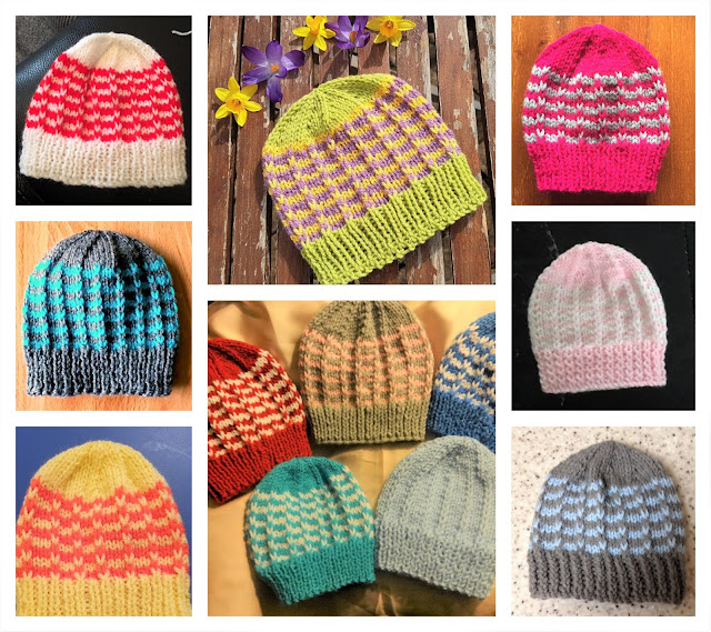 This wonderful photo gallery of DUET hats was the result of a recent Friday Night Mystery Knit !